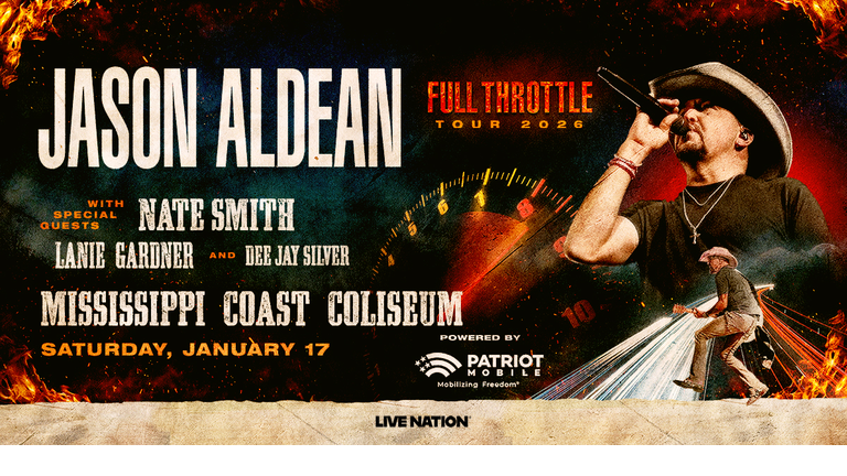 101.1 WNOE welcomes Jason Aldean's Full Throttle Tour 2026 with special guests Nate Smith, Lanie Gardner, and Dee Jay Silver to the Mississippi Coast Coliseum in Biloxi Saturday, January 17! Tickets info here!