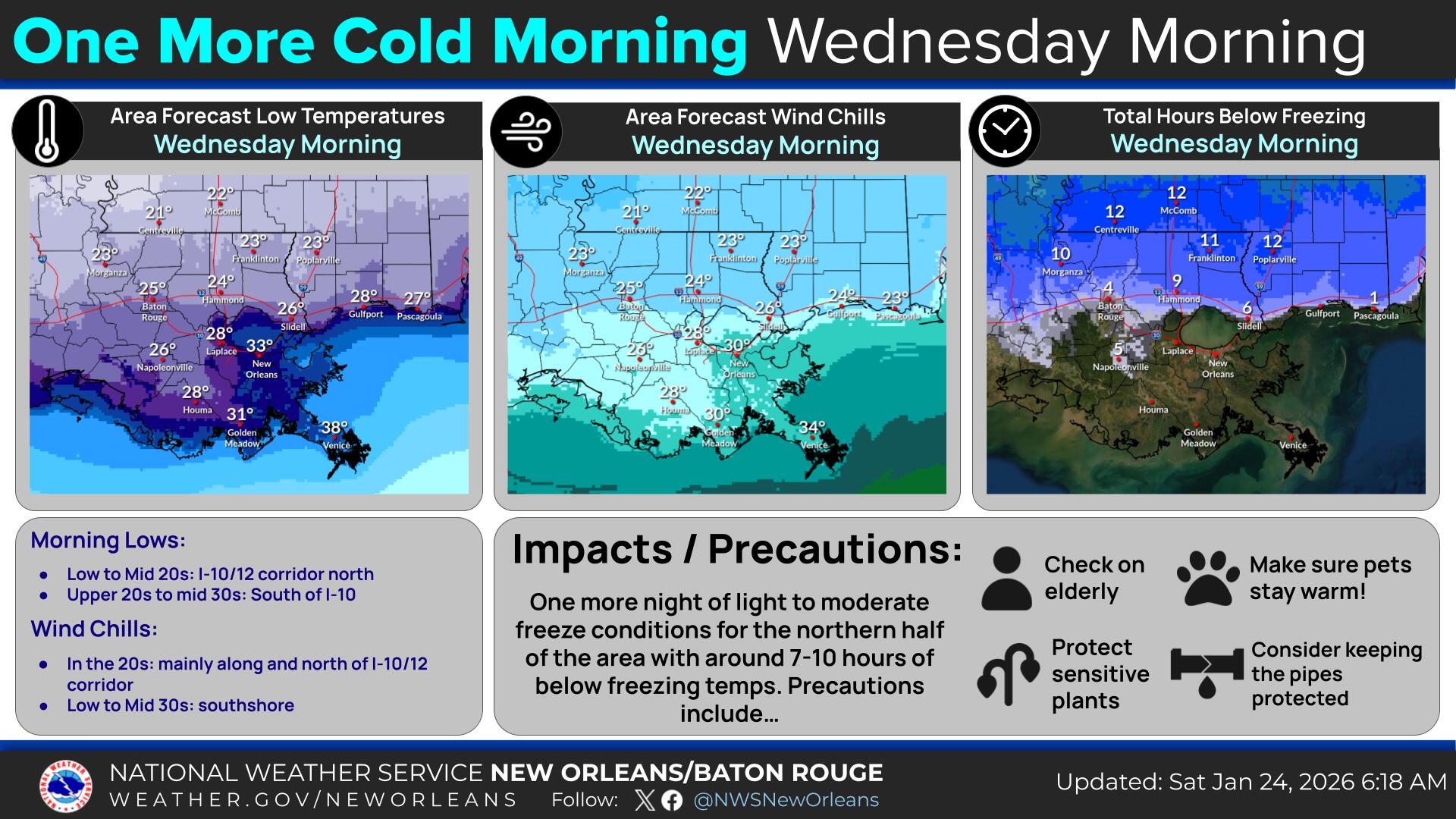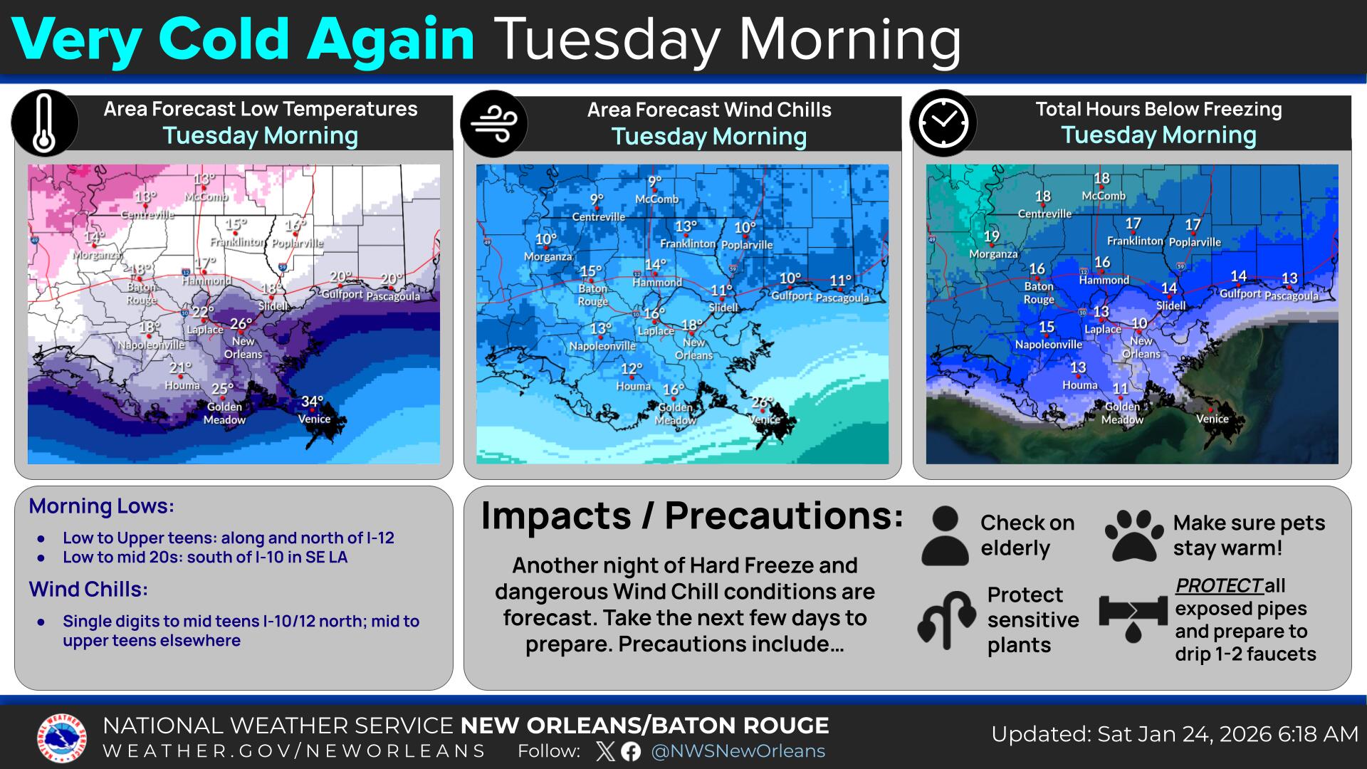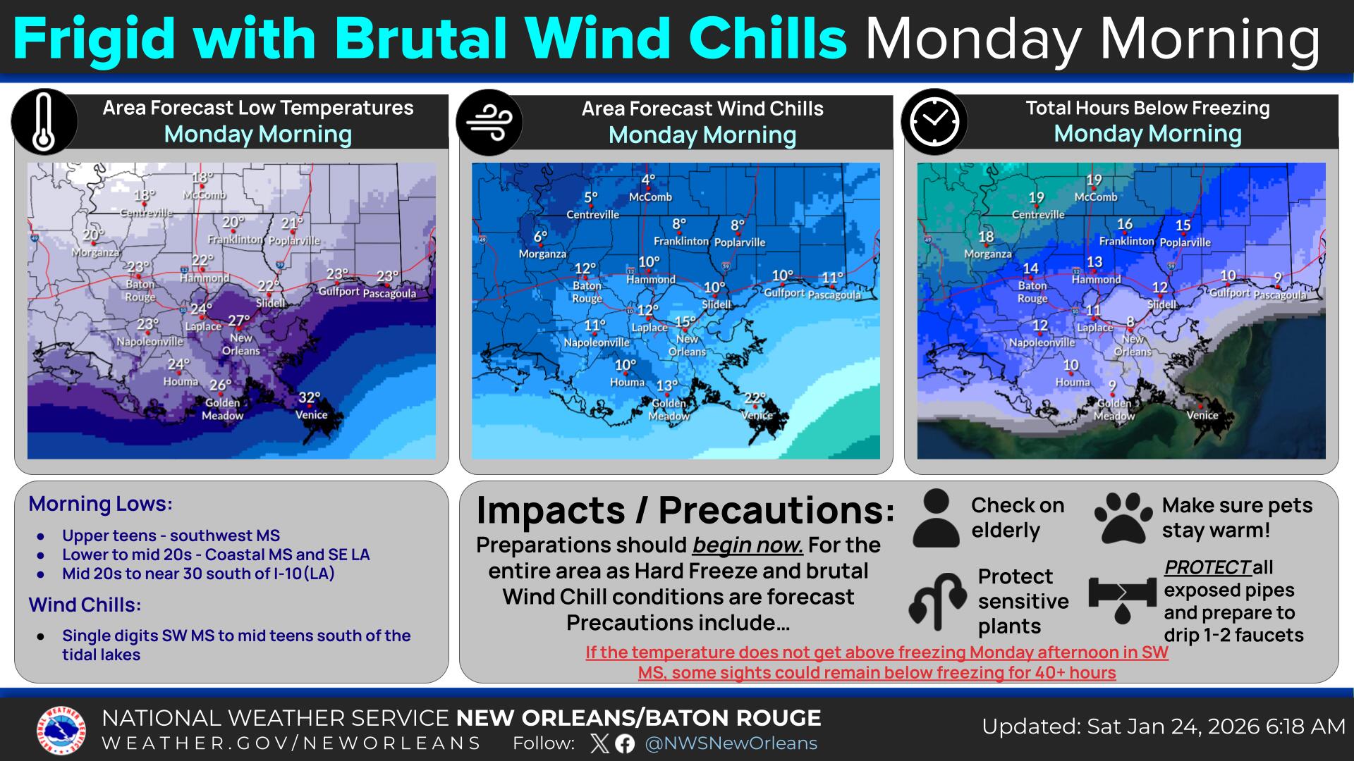 Bitterly cold arctic air is on the way for residents of southeast Louisiana after a rainy weekend.